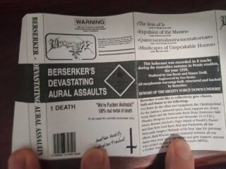 In early 1998, BERSERKER recorded “Devastating Aural Assaults” at Penis Studios. Ryan Marauder was kind enough to scan the booklet for me, but I’ve been unable to obtain any actual music, so I’m not sure what I’ve missed out on.