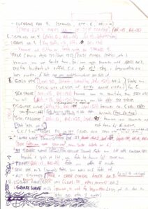 After coming up with a new part, Mortiis would memorise the melody and then add it, colour-coded, into the chaos vortex of scribbled notes that served as his working sheets.