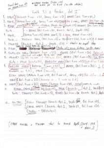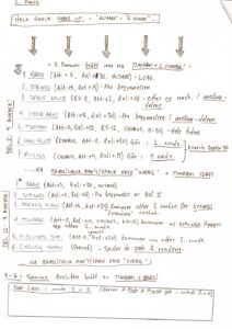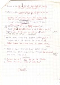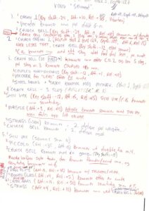 MORTIIS: I would label the first riff, let’s say the bass melody, as blue. Whatever overlaid it was red, and if I came up with something on top of that, it was green. I didn’t layer too much, as that would lead to… issues. Sometimes there’d be a percussion element, marked in green or purple. Typically, I’d use just three or four different colours. And then, in brackets, I’d include some details about how the sound was configured.