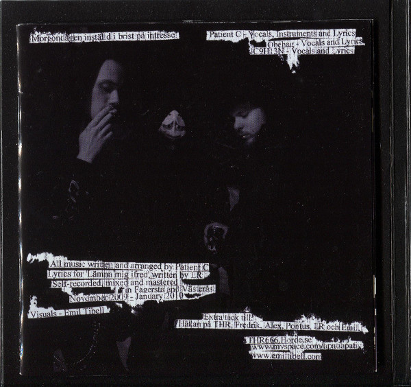 The following autumn, a year on from their misadventure, the Myspace page of Drabbad’s black metal project LEPRA received a message from a local band named APATI. Their guitarist, Obehag, sought assistance in acquiring prescription meds. Drabbad, still incarcerated, replied that he couldn’t help. Soon after, APATI’s lead singer – Pessimisten – announced that assistance was no longer required since Obehag had succumbed to an overdose.