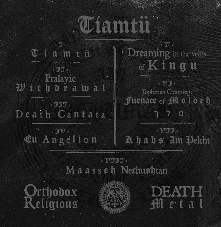 “Tiamtü” was released by NoEvDia in September 2008, ten years after the “Mystérion Tés Anomias” seven-inch. Described in the booklet as ‘Orthodox Religious Death Metal’, OFERMOD’s debut album boasts cover artwork by Timo Ketola and layout by Holy Poison Design, courtesy of Daniel Rostén of FUNERAL MIST.