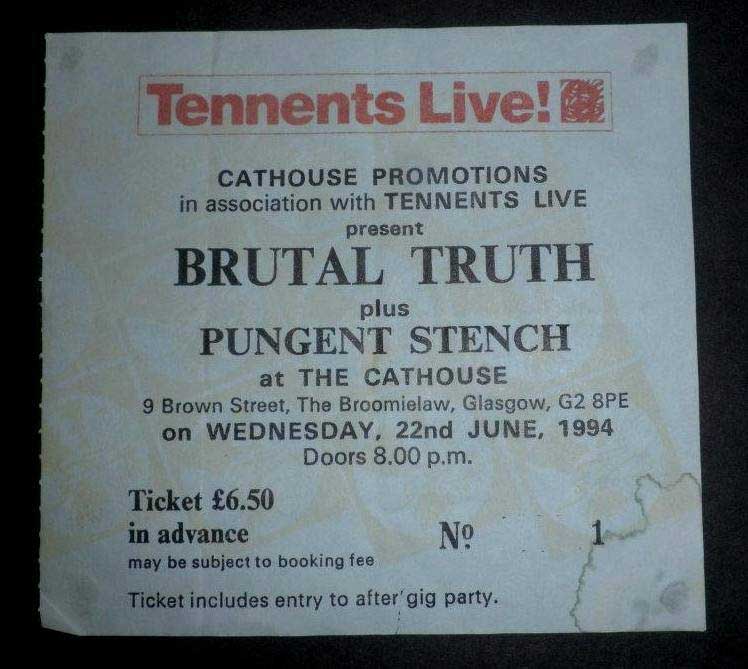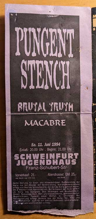Just before “Need to Control” – BRUTAL TRUTH’s second album, released by Earache Records in October 1994 – the band spent two entire months touring Europe with MACABRE and PUNGENT STENCH. The Stockholm date at Kafé 44 has since become somewhat of a local legend.