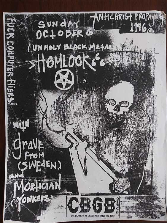 DANNY: Three years had passed since the unfortunate incident with Euronymous, so the sensationalism was in full swing. However, that might still have been a bit too early in what you might call the ‘US black metal scene’ for a lot of people to be familiar with them. HEMLOCK and MYSTICUM played a couple of shows together – but at some big festival in Long Island, BRUTAL TRUTH was also on the bill.