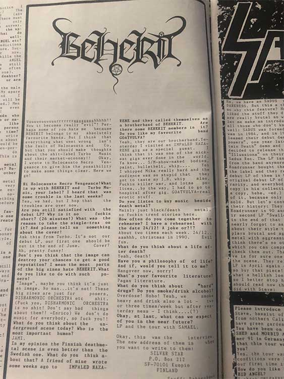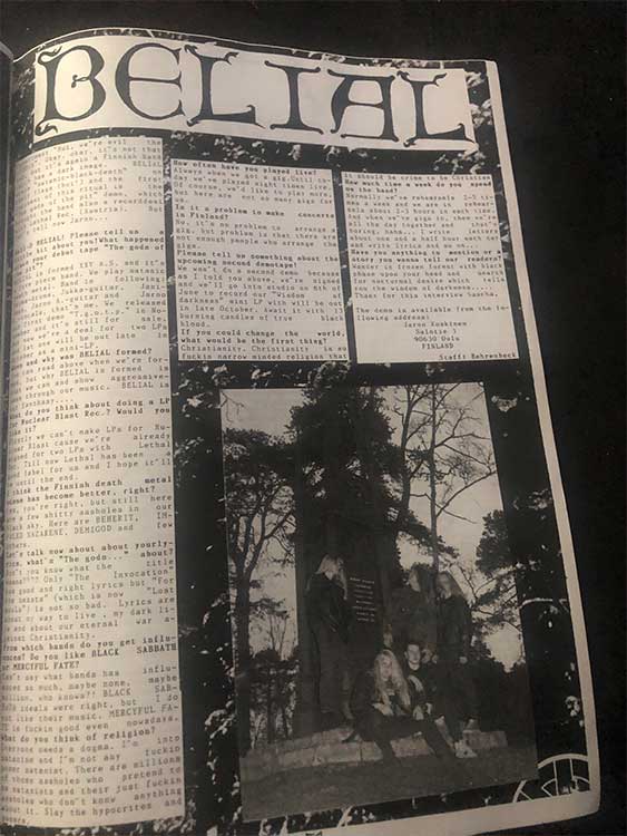 Danny had found the second issue of Darkness Magazine, featuring bands like BEHERIT, IMPALED NAZARENE, BELIAL, and MASTER’S HAMMER.