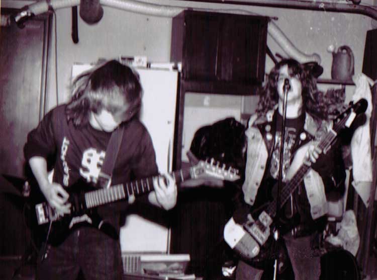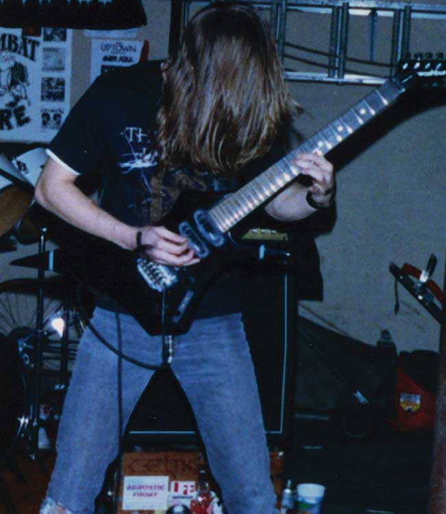 CHUCK: As metalheads, we were alone in Kansas City, but an hour west of us lies Lawrence, a big college town with a great underground scene. There was a place called The Outhouse – basically a cinderblock structure in the middle of a cornfield. The building used to be a storage space for farm equipment, but somehow, somebody had converted it into a music venue.