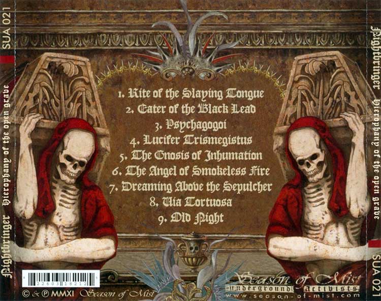 Some of Alabas’ NIGHTBRINGER art can be found on the “The Ruins of Edom” cover, as well as the back of “Hierophany of the Open Grave”.