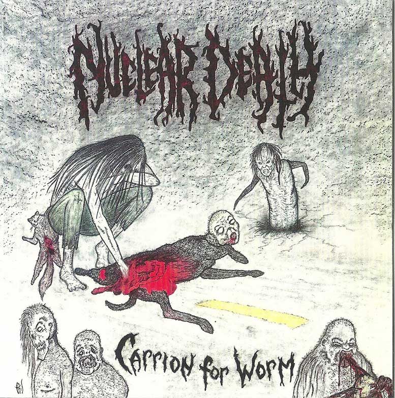 “Carrion for Worm” was released by Wild Rags Records in June 1991, just three months after being recorded, and became NUCLEAR DEATH’s most transgressive and challenging artistic statement to date. Unfortunately, the visual presentation didn’t match its intensity – the cover art, drawn by Phil, feels comparatively uninspired.