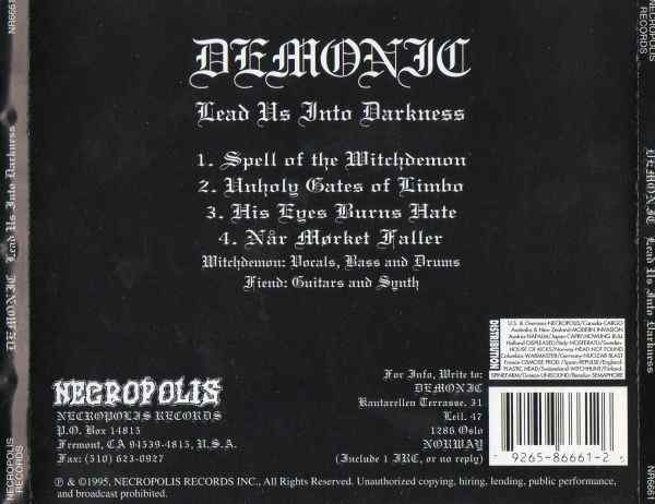 The final Necropolis release of 1995 was DEMONIC’s “Lead Us into Darkness” – a reissue of their ‘94 demo with one bonus track.