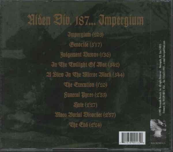 September ‘97 saw the release of NIDEN DIV. 187’s debut, “Impergium”. Formed by DAWN vocalist Henke Forss and members of RETALIATION, THY PRIMORDIAL, and A CANOROUS QUINTET, the band first surfaced with the self-released 1996 demo “Towards Judgement”, which Necropolis reissued soon after.
