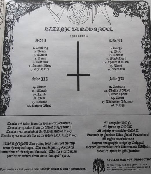 Upon its early 2003 release, “Satanic Blood Angel” stood as N.W.N!’s first major archival undertaking – not just reissuing hard-to-find material but also including previously unknown studio recordings as well as old photos and flyers.
