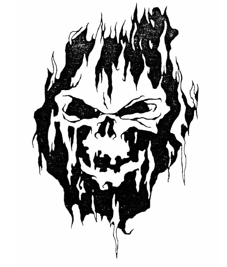 BEHEADED vocalist Marcel Scalpello is credited with ‘inverting and pinching’ the Script Infernal logo. This was a common mid-’90s fanzine trick: photocopy a hand-drawn logo into a negative, then stretch it on the copier’s platen to create a warped variant.