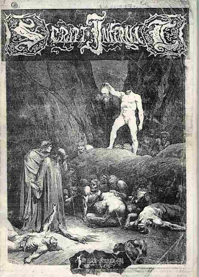 In August 1994, Timo learned of Final Obituary’s demise. Rather than discarding his twelve interviews for #2, he decided to include them in the nearly finished Script Infernal. The editorial column notes that this meant ‘lots of typing and work’ performed ‘in great haste and stress’.