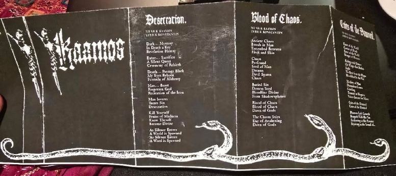 KOSTA: This was during MARDUK’s “Panzer Division…” era, and I remember Morgan Håkansson visiting Timo one evening to discuss the booklet layout. While they were working, Timo played him the KAAMOS seven-inch. Apparently, Mogge said, ‘Yeah, sounds good – but it’s ten years too late.’ Like, time had moved on.
