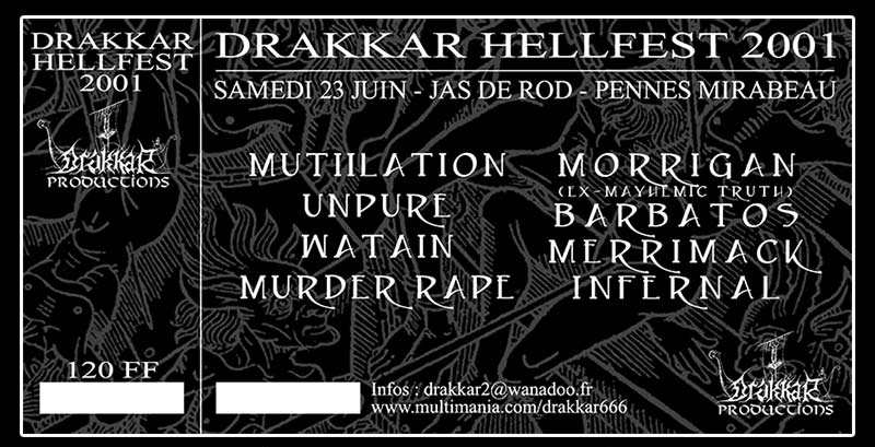 For a modest underground festival, Drakkar Hellfest 2001 had an impressive scope of international bands. Besides the two Swedish acts and Germany’s MORRIGAN, BARBATOS represented Japan and MURDER RAPE Brazil.