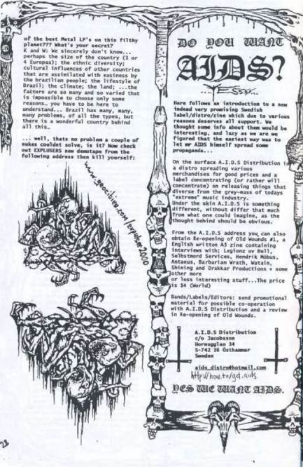 Without doubt, the most notable feature is the exclusive DEATHSPELL OMEGA interview. At the time, the French black metal band had released “Infernal Battles” through Northern Heritage and recently recorded their second album, “Inquisitors of Satan”.