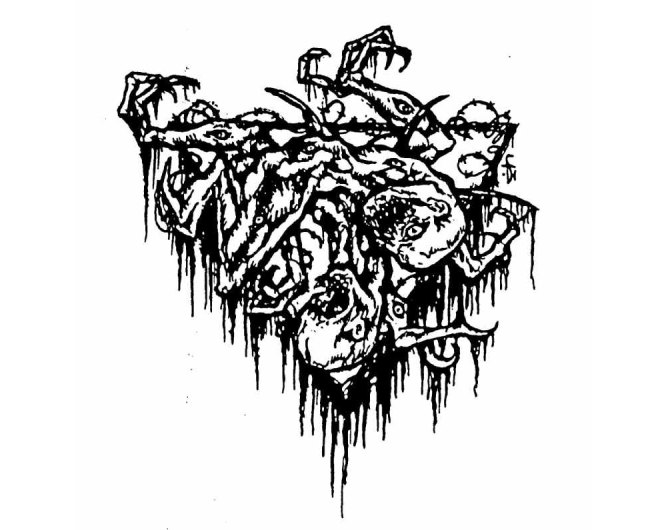 ERIK: The main reason his name appears first is that he helped us print the magazine. Timo also contributed an illustration: a downward-pointing triangle with some kind of foetus inside. I think it was originally meant for WATAIN but ended up in Hellish Massacre instead.